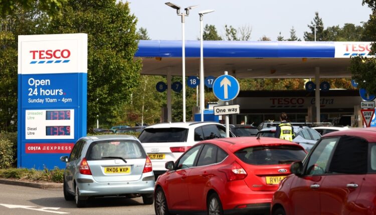 واصطف عشرات المواطنين في بريطانيا على محطات الوقود جنوب شرق إنجلترا من خلال طوابير طويلة ونفد الوقود في العديد منها.
