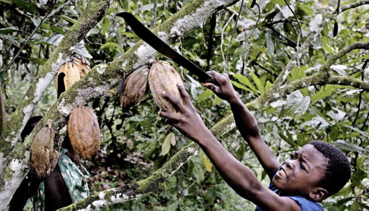 ويُعتقد أن حوالي 1.5 مليون طفل يعملون في حقول الكاكاو في ساحل العاج وجارتها غانا، وهما معاً تنتجان 60% من الكاكاو في العالم.