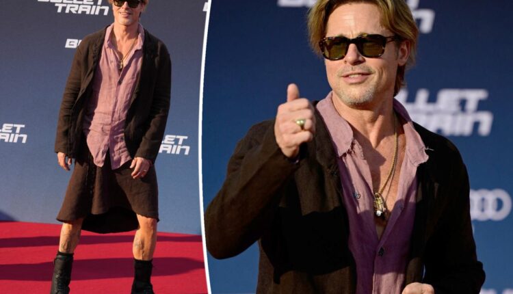 نيويورك – يورو عربي| فاجأ الممثل العالمي براد بيت الجمهور بإطلالته من العرض الأول من فيلمه “Bullet Train”، وهو يرتدي تنورة نسائية بنية مع سترة أسفلها قميص باللون الوردي.