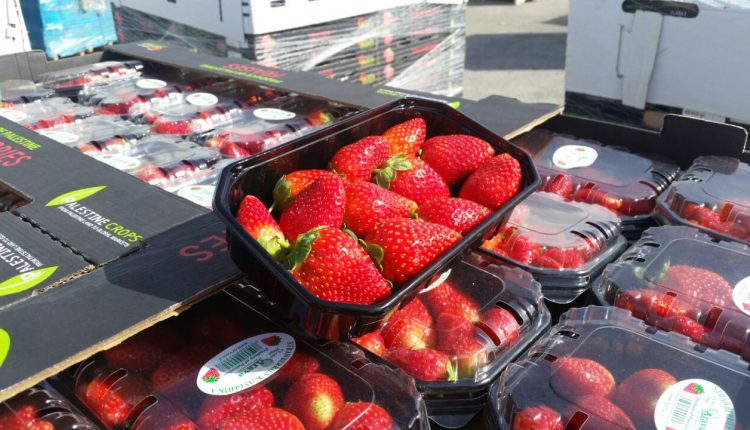 وتمر الفراولة من قطاع غزة إلى إسرائيل عبر معبر ( كرم أبو سالم ) .